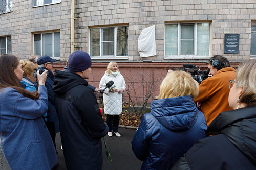Цветы к памятной доске возлагают родственники Владимира Шубина